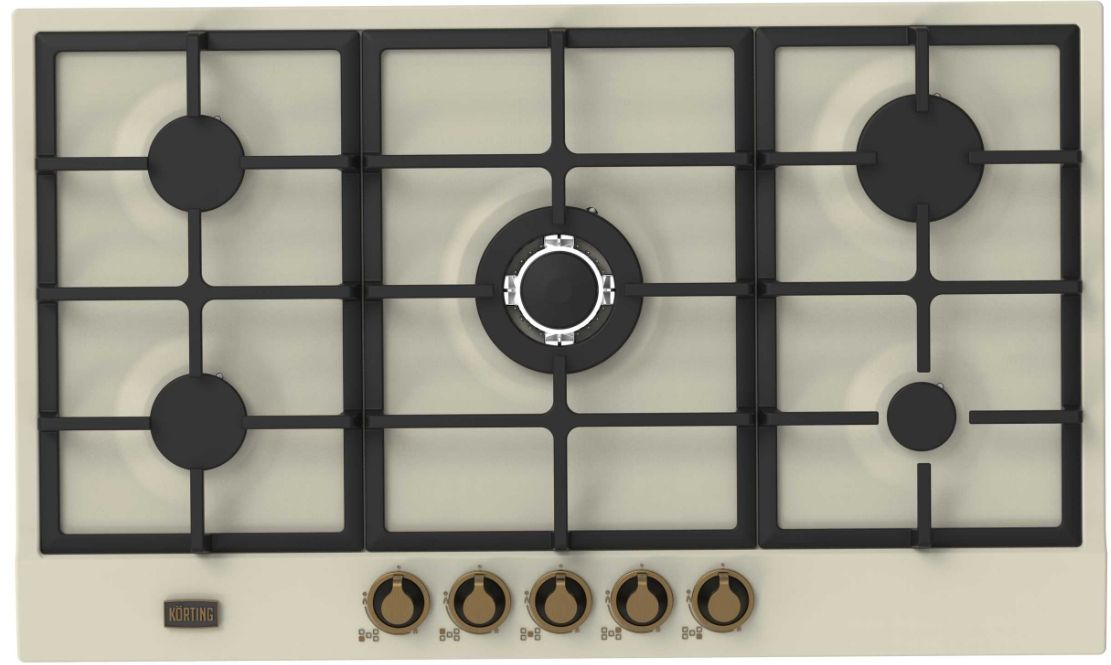 Газовая варочная панель Korting HG 961 CTB — элегантный ретро-стиль, 5-зонная компоновка и сбалансированная мощность WOK-конфорки