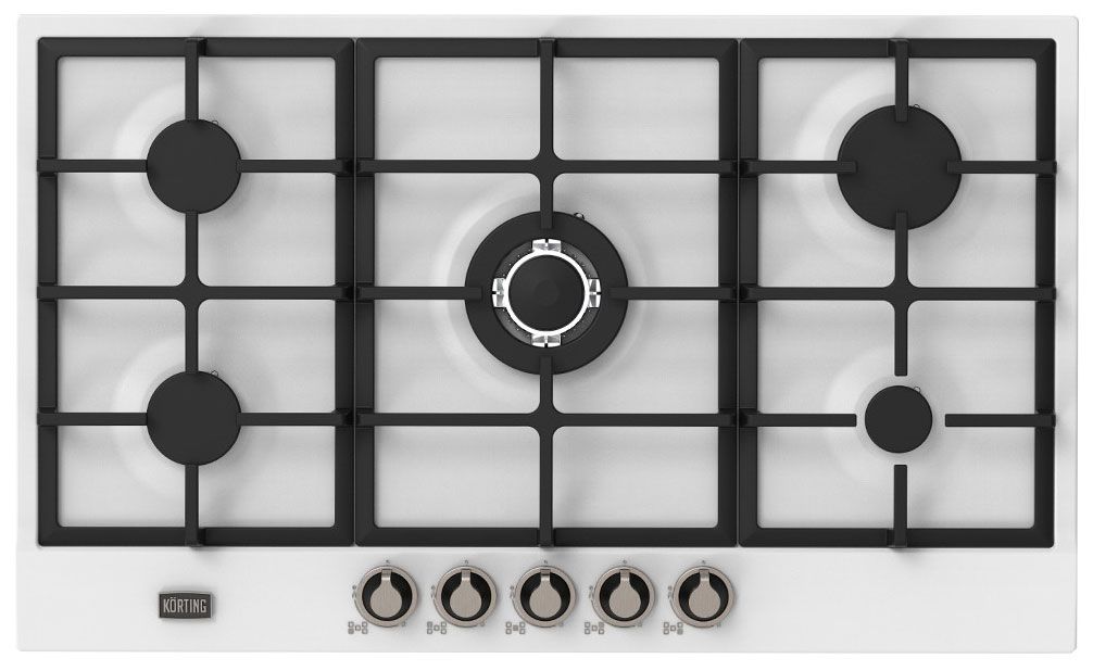 Газовая варочная панель Korting HG 961 CTSI — элегантный ретро-стиль, 5-зонная компоновка и сбалансированная мощность WOK-конфорки