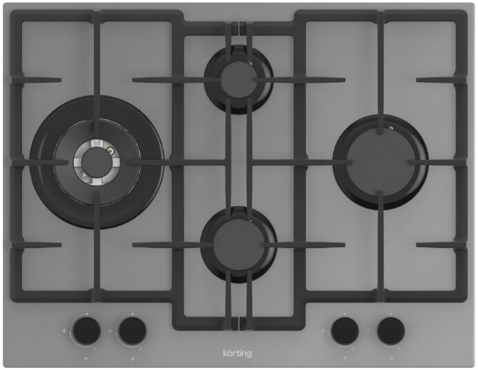 Газовая варочная панель Korting HGG 67009 CQTGr — профессиональный потенциал и увеличенная площадь в сером стекле