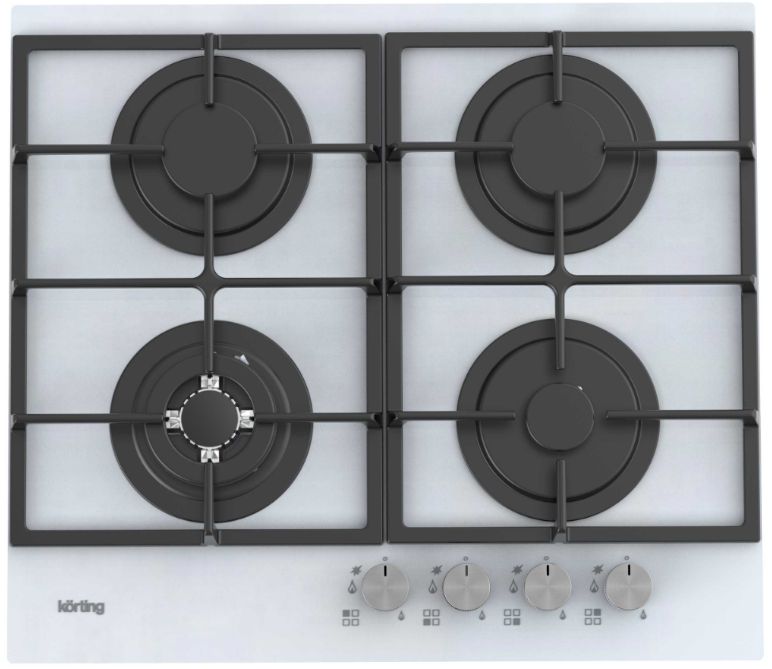 Газовая варочная панель Korting HGG 6722 CTW — белая чистота линий с мощным WOK