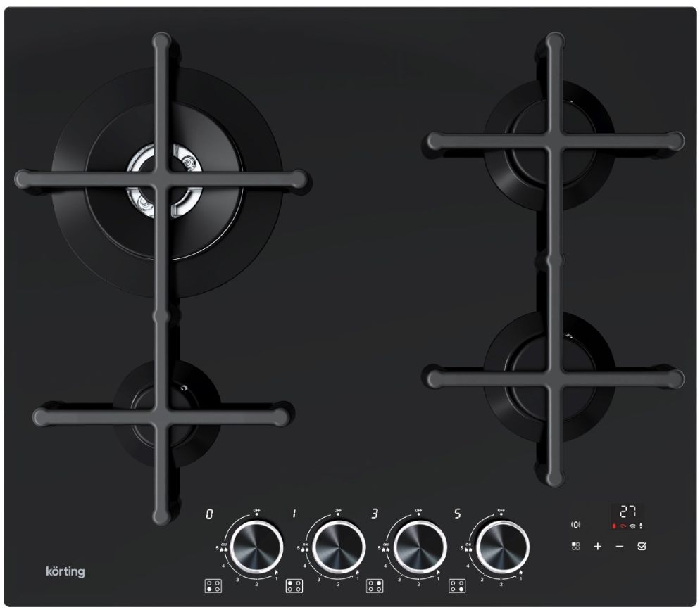 Газовая варочная панель Korting HGG 6766 ICPTN сочетает стильный черный дизайн стеклокерамической поверхности и передовые интеллектуальные функции. Модель оснащена четырьмя горелками, включая мощнейшую WOK-конфорку, и системой газ-контроля для максимальной безопасности.