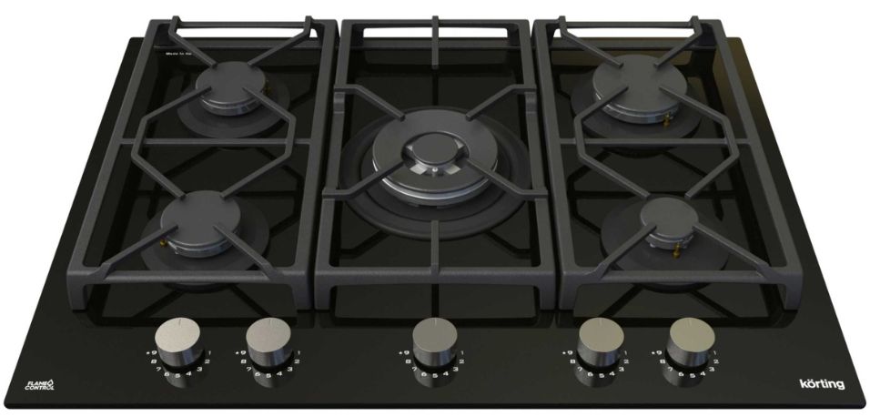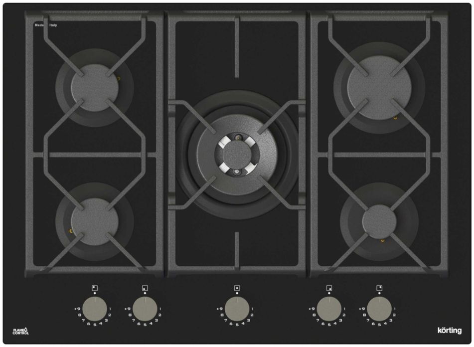 Газовая стеклянная варочная панель Korting HGG 7987 CTN FLC — сверхмощная WOK-конфорка 4.0 кВт, элегантный дизайн «газ на стекле» и интеллектуальный контроль пламени