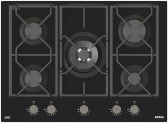 - 5 разнообразных конфорок — WOK-конфорка (4.0 кВт), мощная (2.8 кВт), средняя (1.75 кВт) и две стандартные (1.4 и 1.0 кВт) для любых кулинарных задач