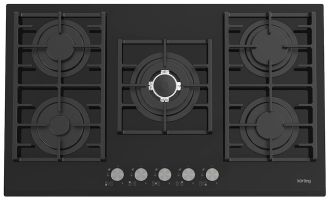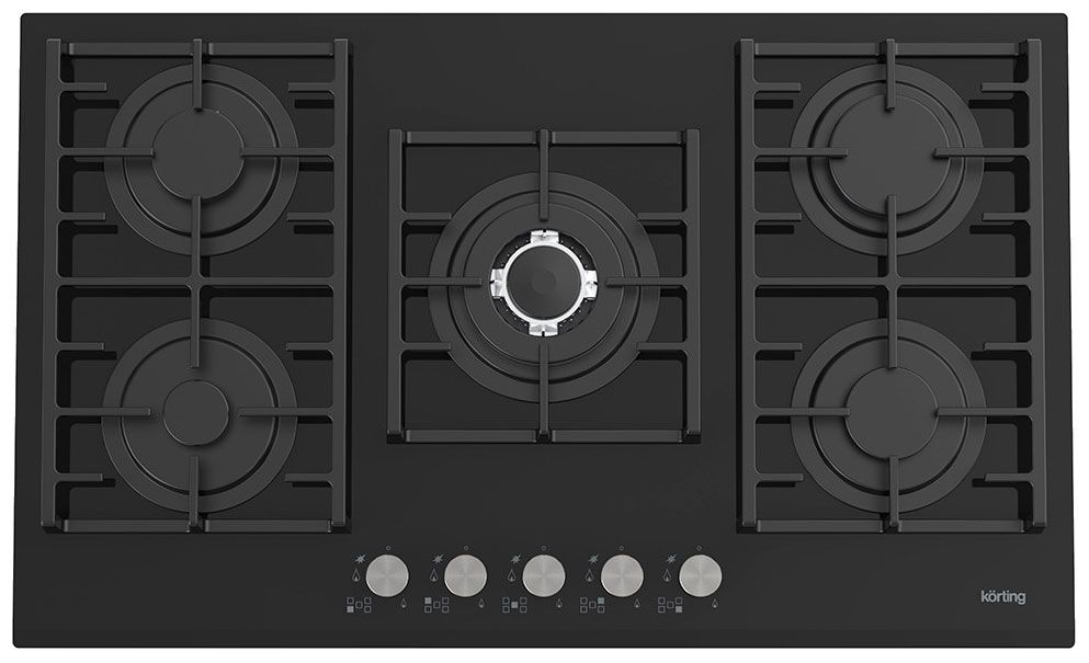 Газовая варочная панель Korting HGG 9835 CTN — элегантный черный дизайн, 5-зонная компоновка и сбалансированная мощность WOK-конфорки