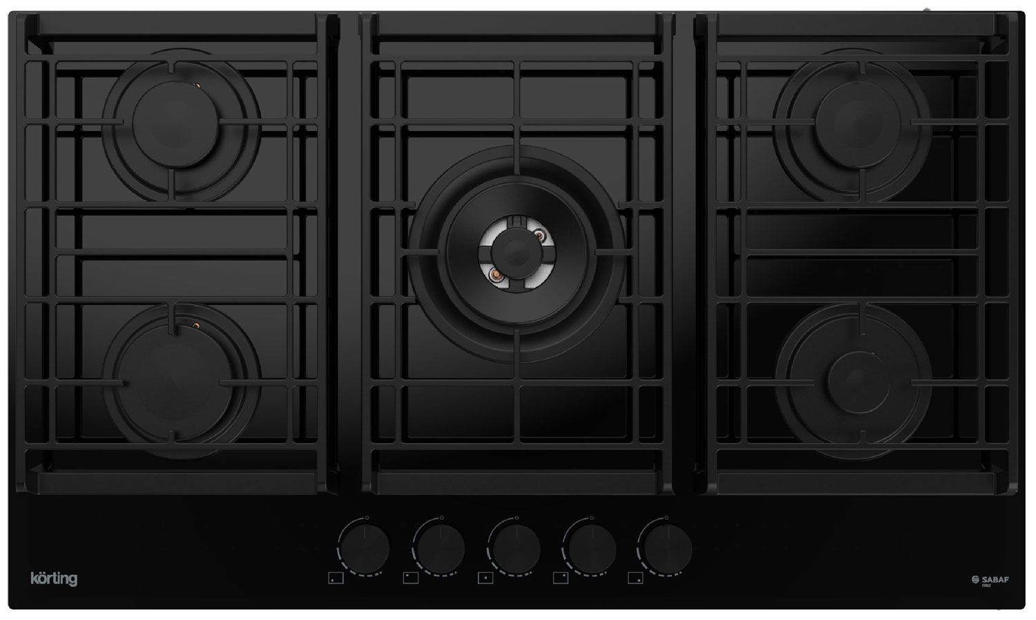 Газовая варочная панель Korting HGG 9955 CTN — профессиональная WOK-конфорка 4.0 кВт, 5-зонная компоновка и элегантный черный дизайн