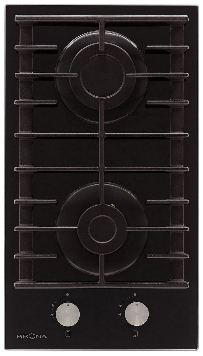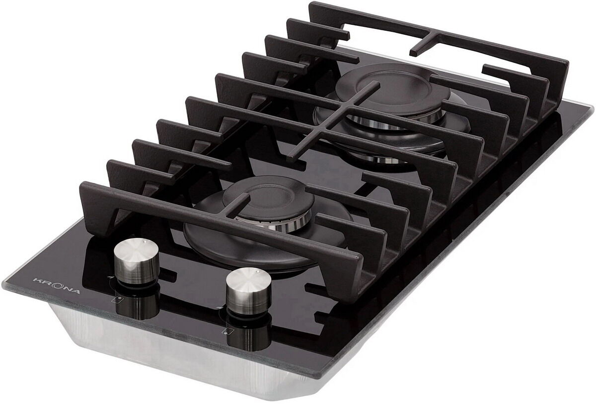 Газовая панель Krona HAGEL 30 BL – компактная двухконфорочная модель с мощной WOK-зоной и чугунной решеткой