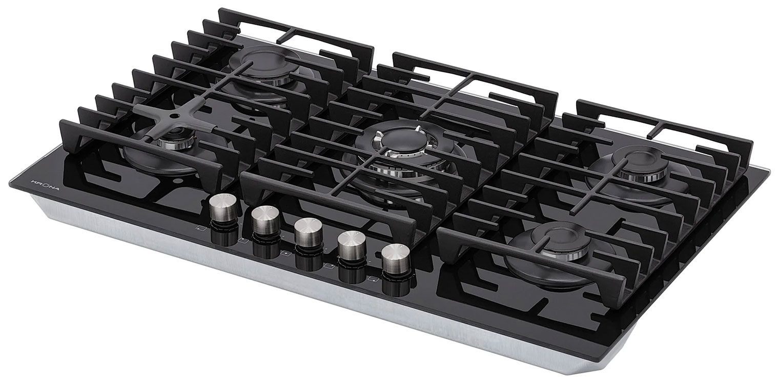 Газовая варочная панель Krona HAGEL 90 BL W FC — пять конфорок, мощная WOK-зона 3.8 кВт и прецизионная система контроля пламени
