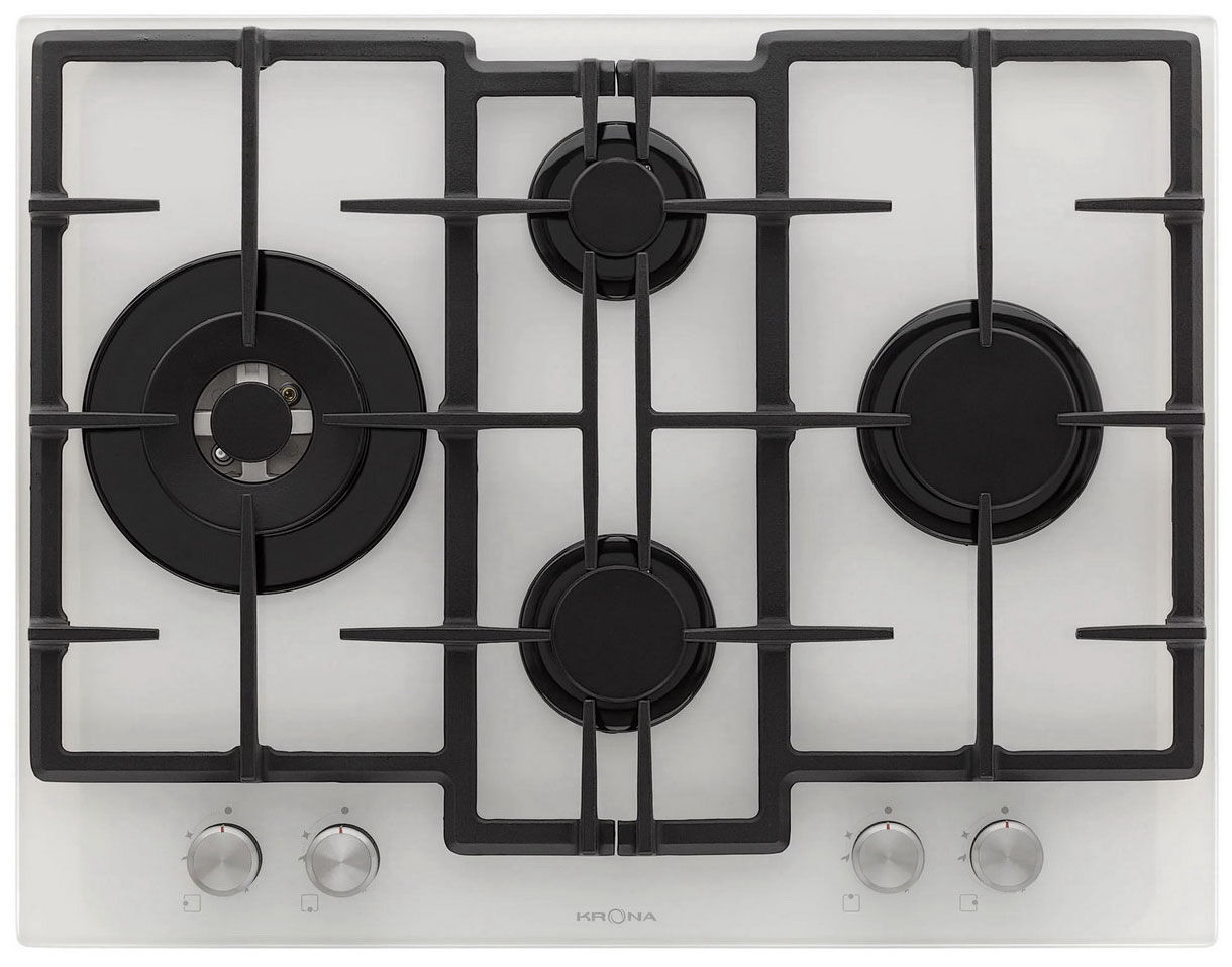 Газовая панель Krona RITTER 67/60 WH – увеличенная рабочая зона 67 см с мощной WOK-конфоркой и чугунными решетками