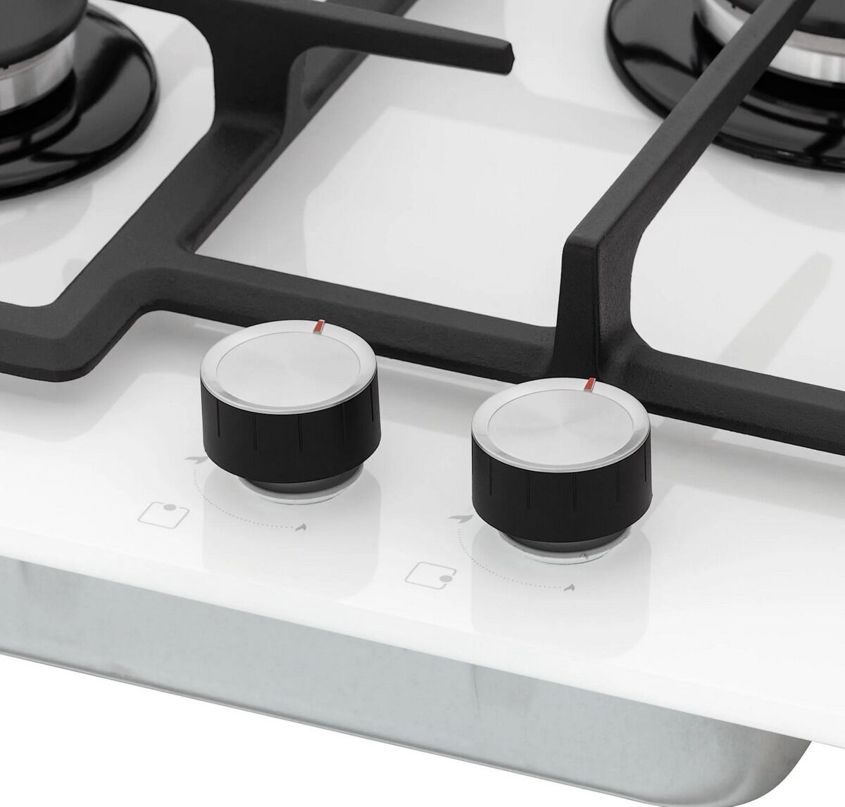 Газовая варочная панель Krona RITTER 67/60 WH – это уникальное решение, объединяющее стандартную ширину встраивания 60 см и увеличенную лицевую панель 67 см. Модель из белого закаленного стекла оснащена 4 конфорками, включая мощную WOK-зону с тройным пламенем (3,8 кВт), и 2 устойчивыми чугунными решетками, обеспечивая комфорт при использовании посуды с увеличенным диаметром дна.