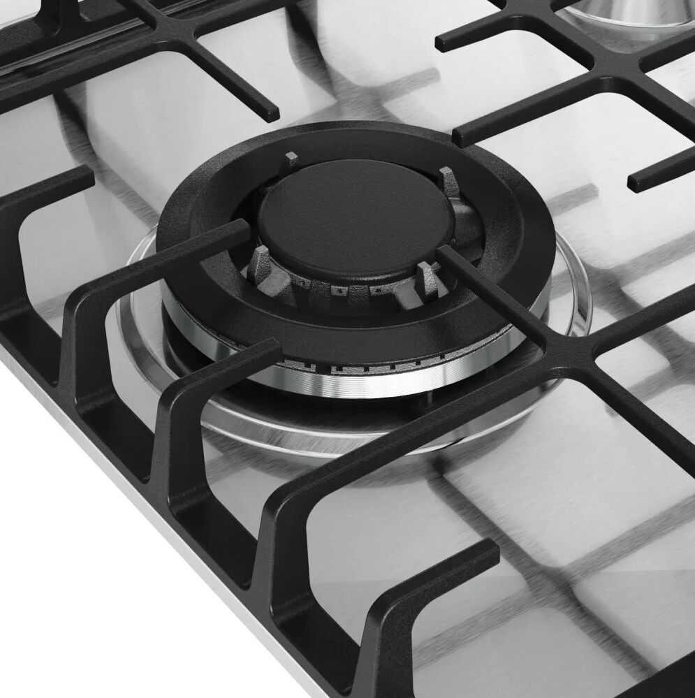 Газовая варочная панель Kuppersberg FS 46 X – это практичный и надёжный выбор для тех, кому нужно больше двух конфорок, но позволяет ограниченное пространство. Модель шириной 44 см с рабочей поверхностью из нержавеющей стали и чугунными решётками предлагает три газовые конфорки, включая мощную WOK-горелку 3.4 кВт, и оснащена всеми необходимыми системами безопасности. Премиальные конфорки Chinese SABAF, автоматический электроподжиг и полный газ-контроль делают эту панель идеальным помощником на компактной кухне, даче или в студии.
