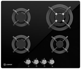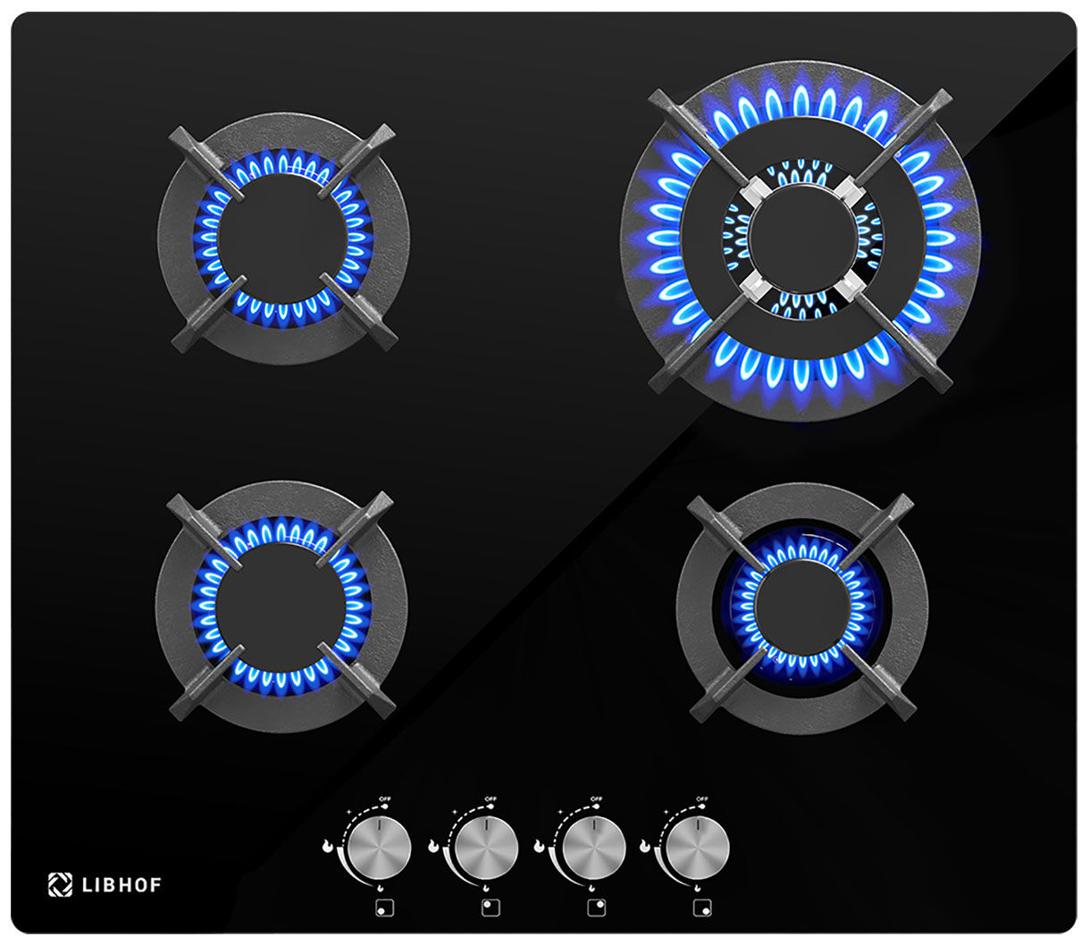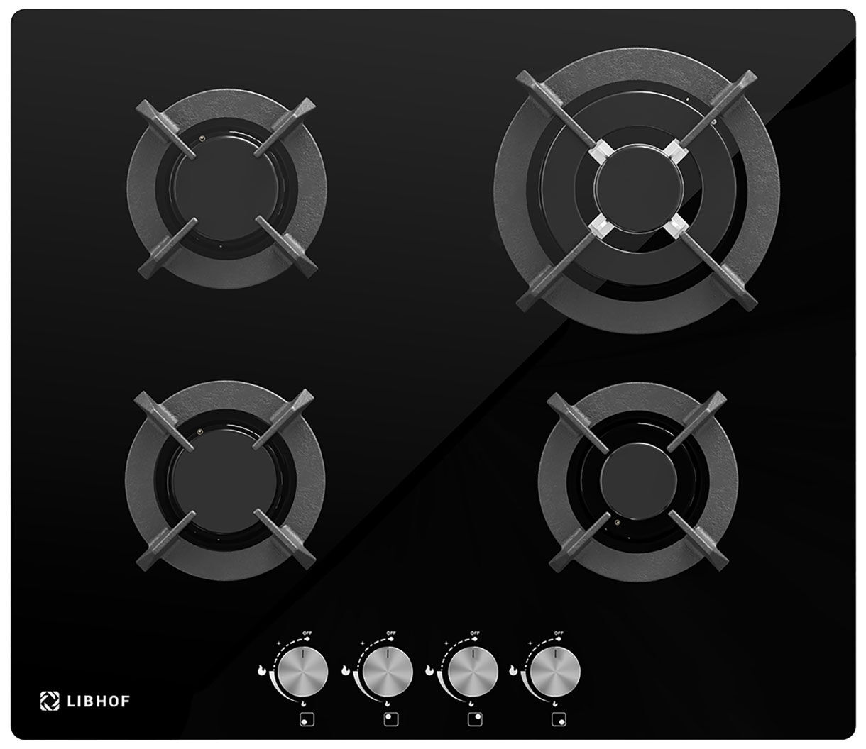 Газовая варочная панель Libhof IS-604B – премиальная мощность, четыре конфорки, WOK-конфорка и чугунные решётки