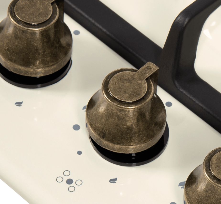 - Gas Control – система газ-контроля. Мгновенно блокирует подачу газа при затухании пламени на всех шести конфорках.