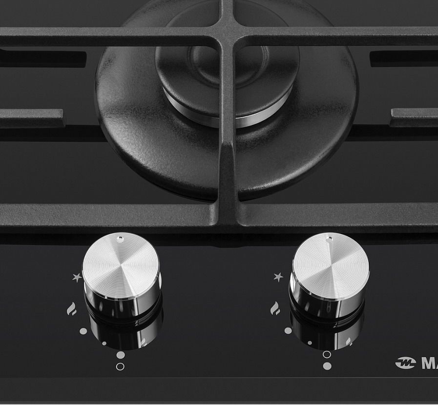 Газовая варочная панель Maunfeld EGHG.32.6CB/G – сбалансированная мощь в чёрном стекле