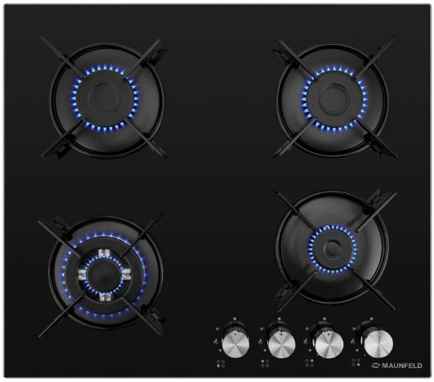 Газовая варочная панель Maunfeld EGHG.64.13STS-EB – мощь и стиль на чёрном стекле