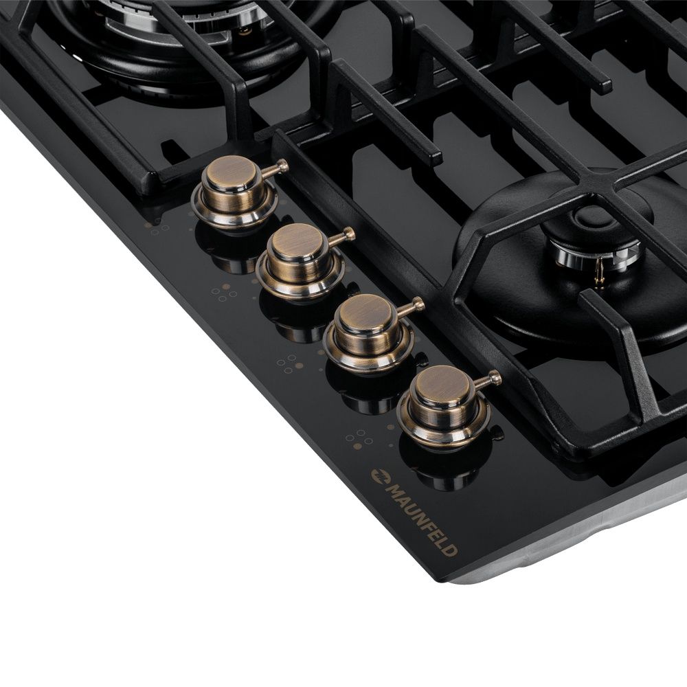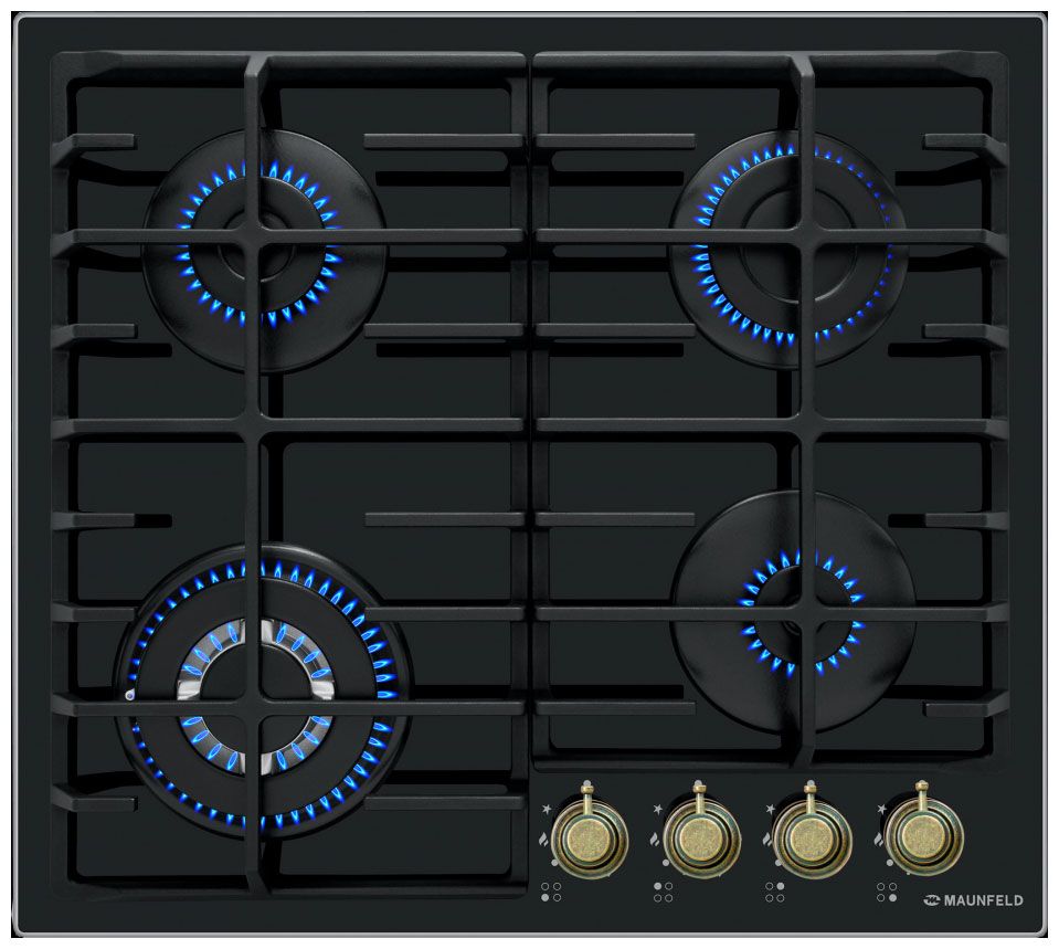 Газовая варочная панель Maunfeld EGHG.64.63CB.R/G – стиль, мощность и интеллектуальная безопасность в черном цвете