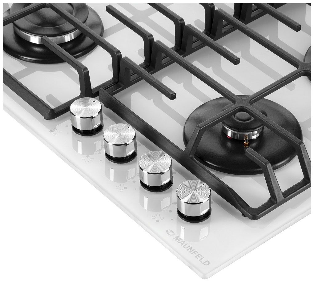 Газовая варочная панель Maunfeld EGHG.64.6CW/G – белоснежная классика с усиленным стеклом и точным управлением