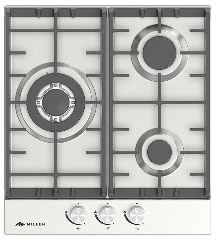 Газовая варочная панель Millen MGH 451 IX – три конфорки с мощным WOK 3300 Вт из нержавеющей стали