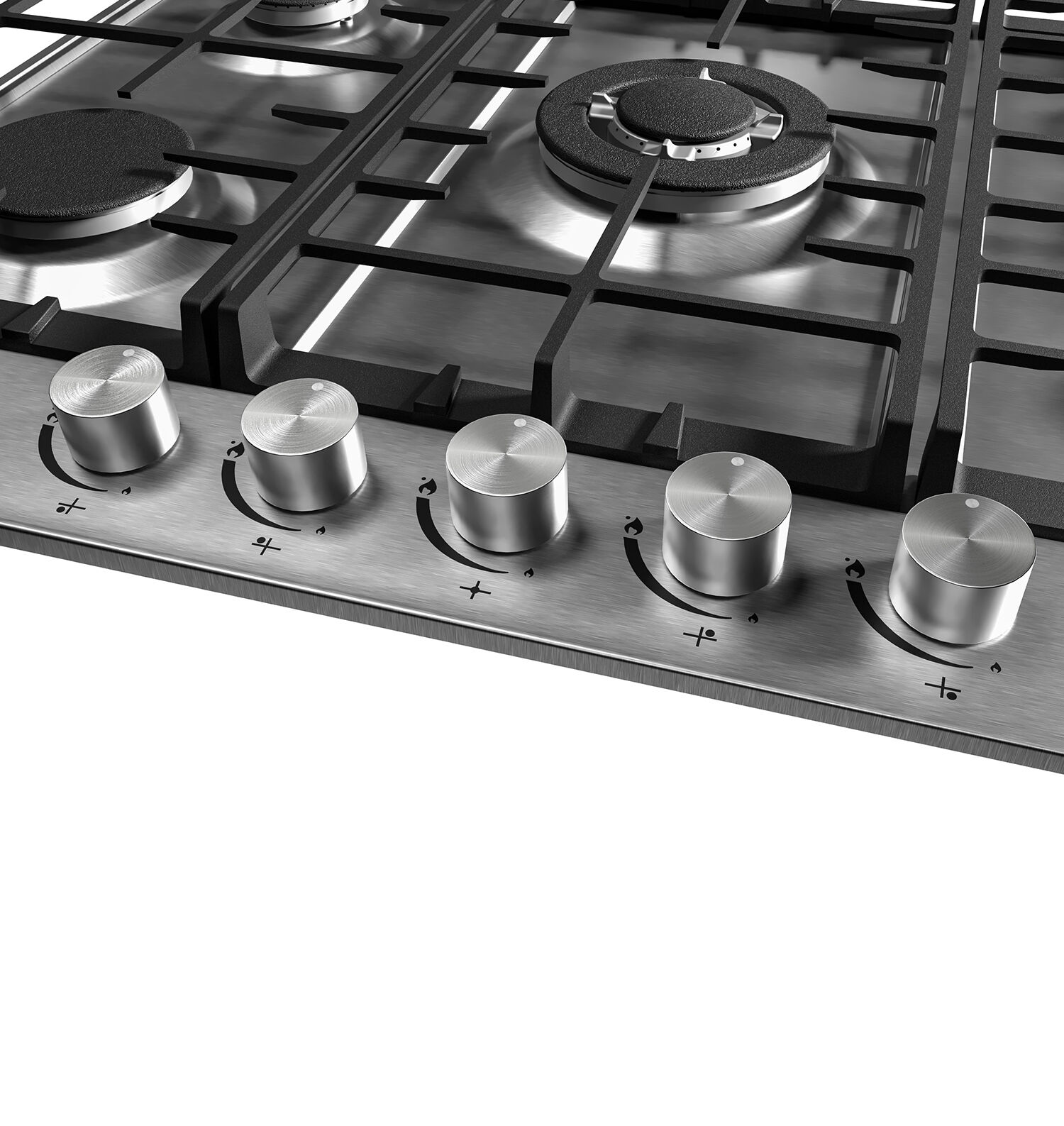- Премиальные итальянские клапаны SABAF – все пять конфорок оснащены клапанами от ведущего итальянского производителя SABAF, которые гарантируют точную регулировку пламени, долговечность и безупречную работу на протяжении многих лет.