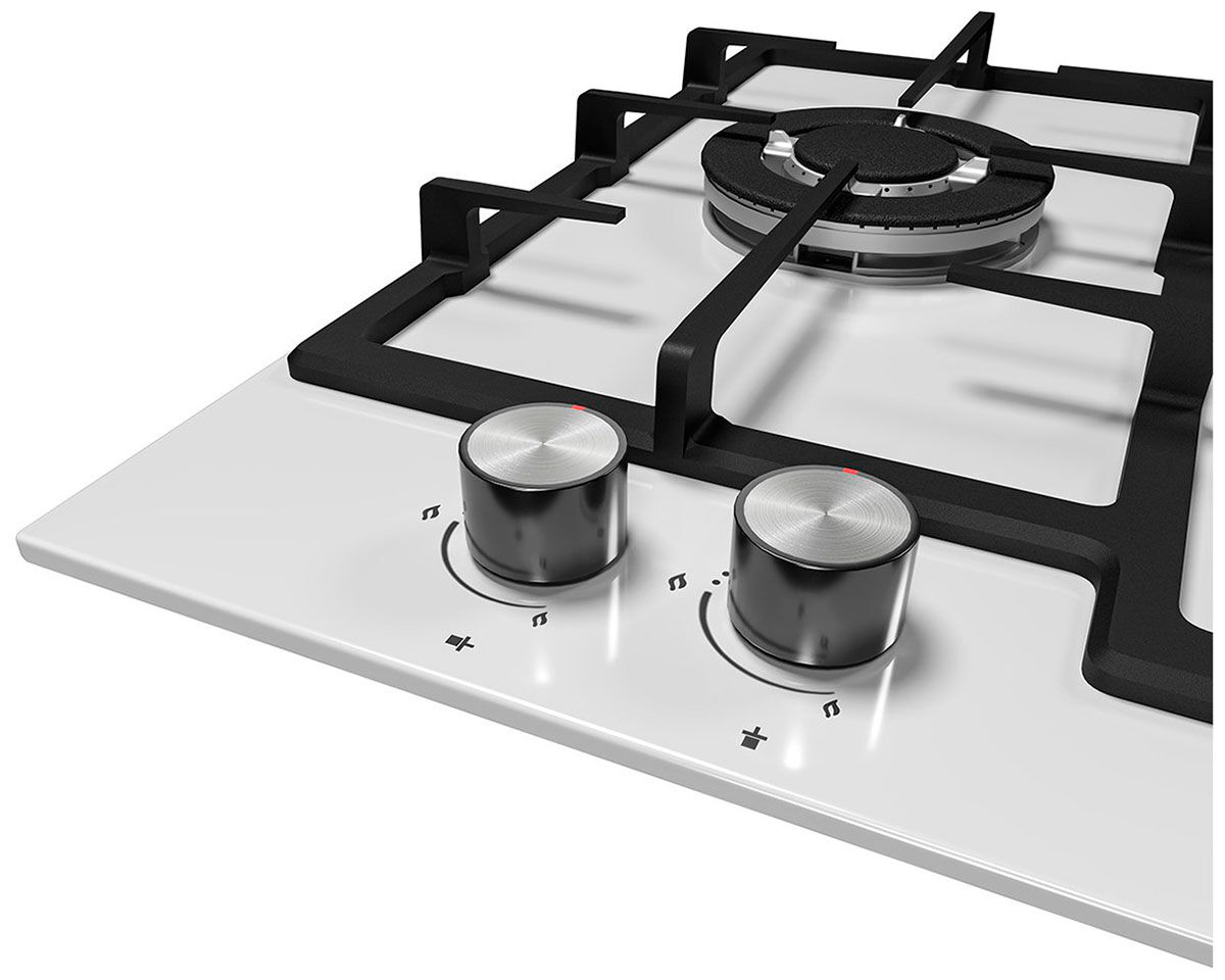 - Полная безопасность (газ-контроль + электроподжиг) – функция газ-контроля на всех четырёх конфорках автоматически перекроет подачу газа, если пламя погаснет. Автоматический электроподжиг позволяет зажечь конфорку одним поворотом ручки – без спичек и зажигалок.
