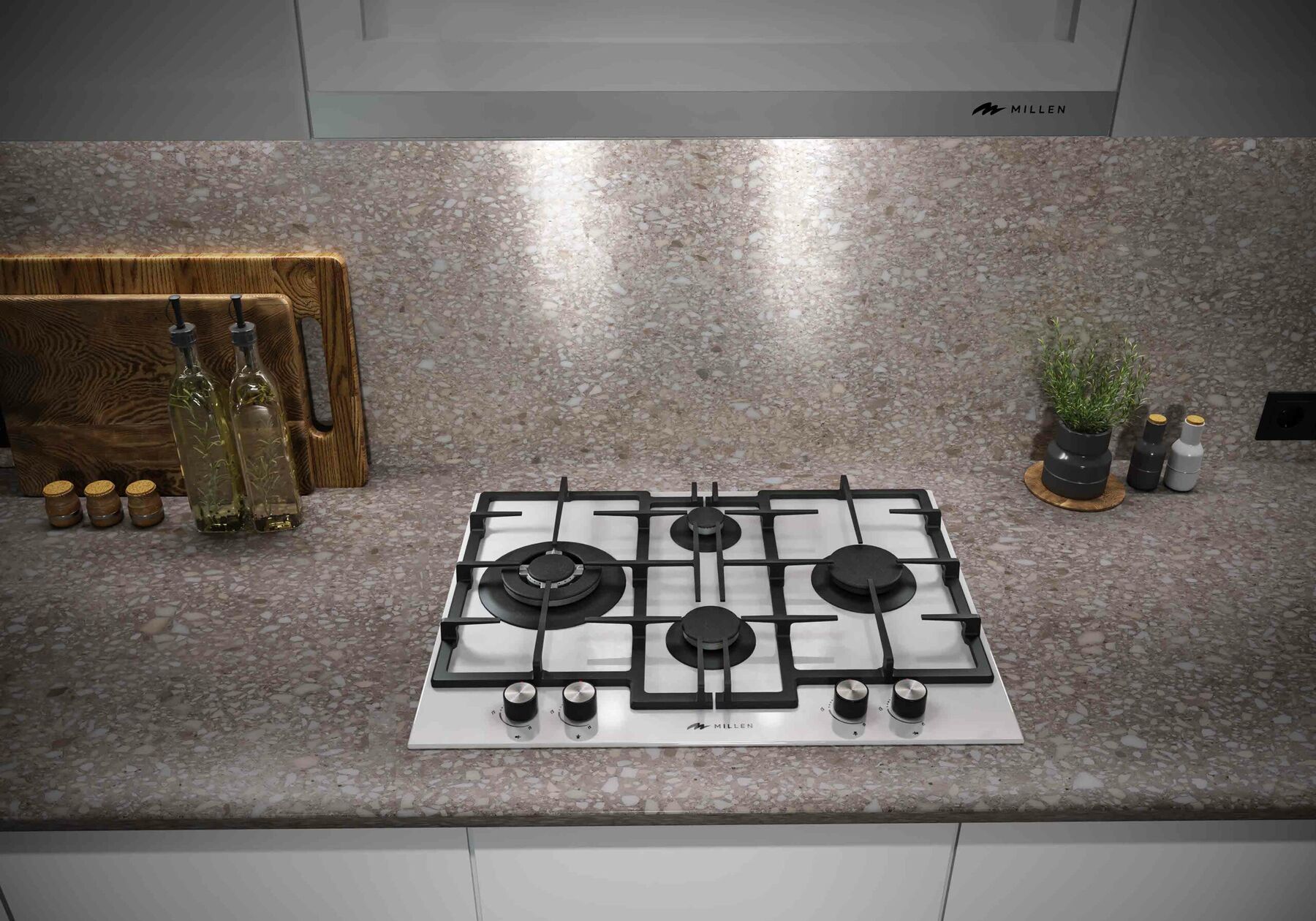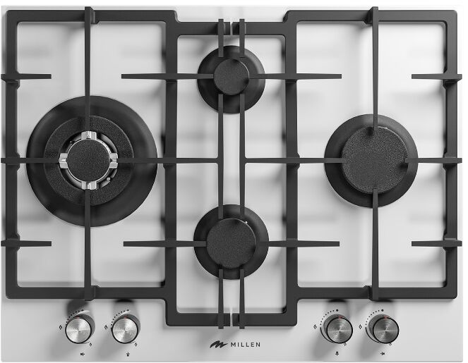 Газовая варочная панель Millen MGHGD 6501 WH – четыре конфорки на белом стекле с мощным WOK 3800 Вт