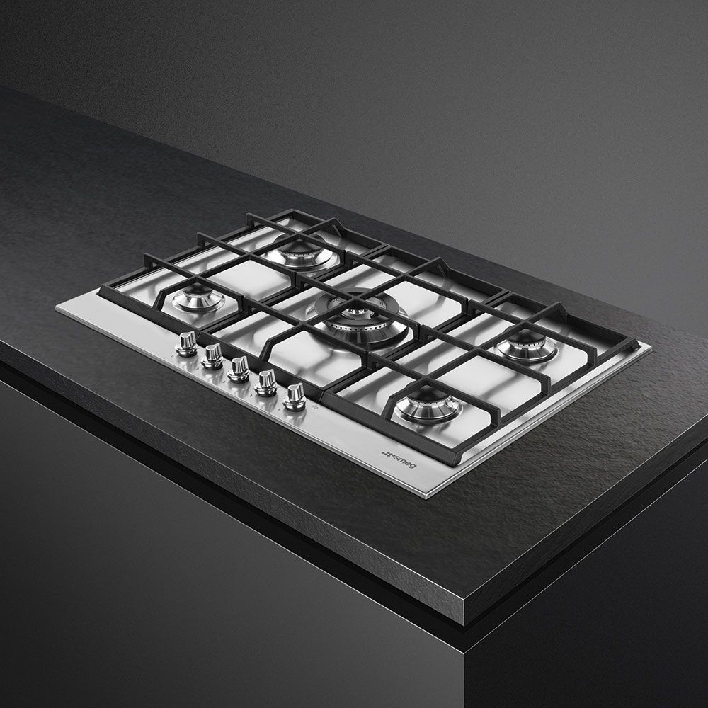 SMEG PX175 — профессиональная газовая панель с 5 конфорками и горелкой Wok 4 кВт