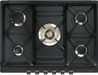 Газовая варочная панель Smeg SR775AO из коллекции Cortina — это 5-горелочная модель с профессиональной мощностью в фирменном ретро-исполнении. Модель шириной 68.5 см в цвете «антрацит» с латунными деталями идеально подходит для просторных кухонь, где ценится и традиционный стиль, и высокая производительность.