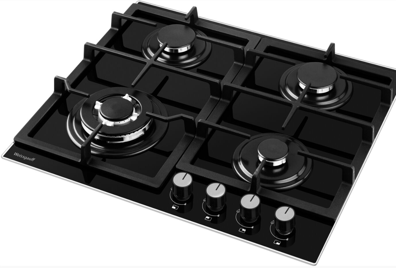 Газовая варочная панель Weissgauff HGG 641 BGL – 4 конфорки с WOK 3.8 кВт, газ-контроль и чугунные решётки