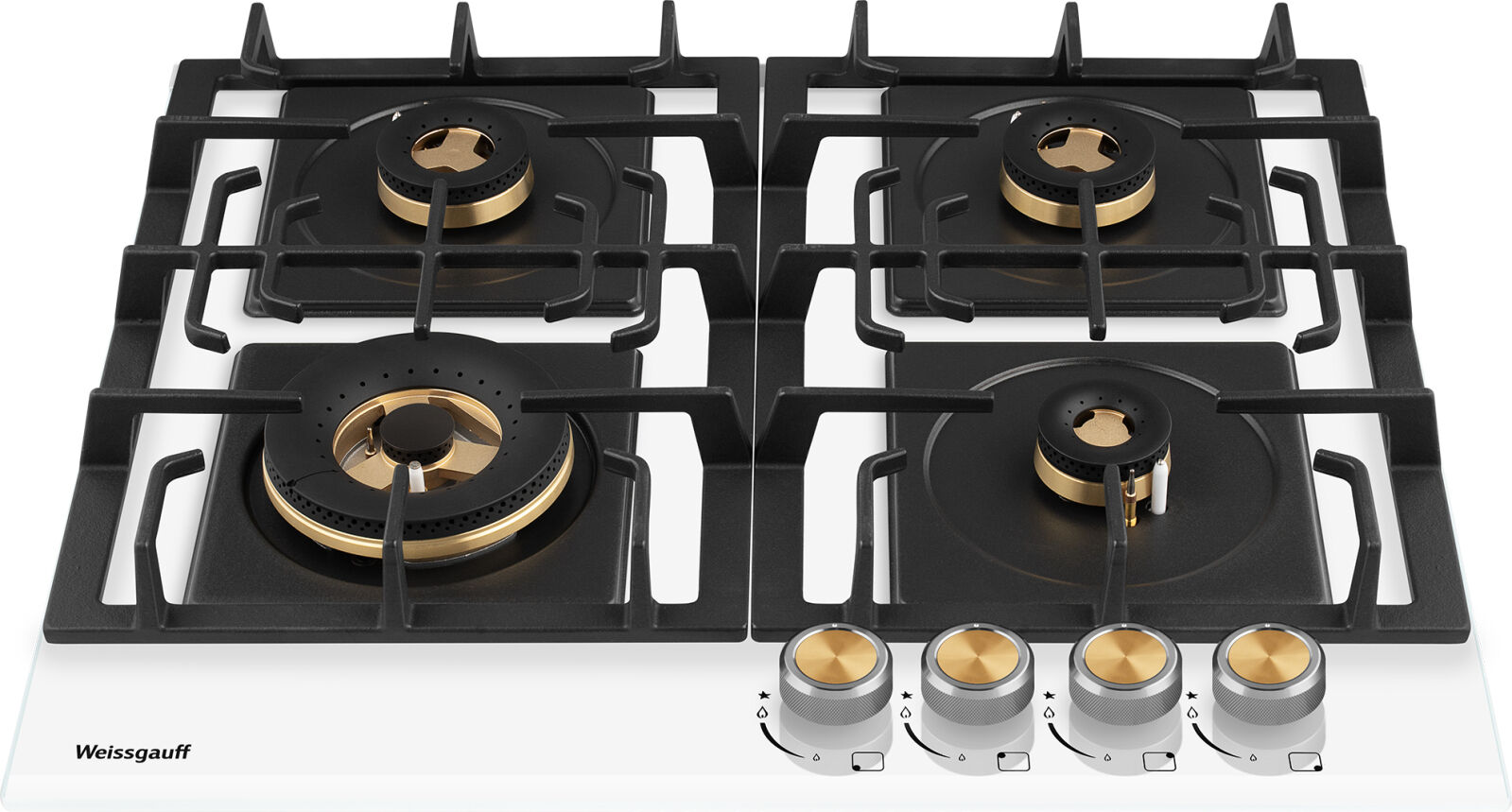 Газовая варочная панель Weissgauff HGG 641 WV Volcano Burner Nano Glass – серия PREMIUM, WOK 4.5 кВт с тройным пламенем и покрытие NanoGlass