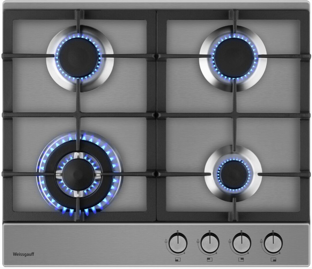 Газовая варочная панель Weissgauff HGG 641 XB – нержавеющая сталь, газ-контроль и WOK-конфорка с трёхконтурным пламенем