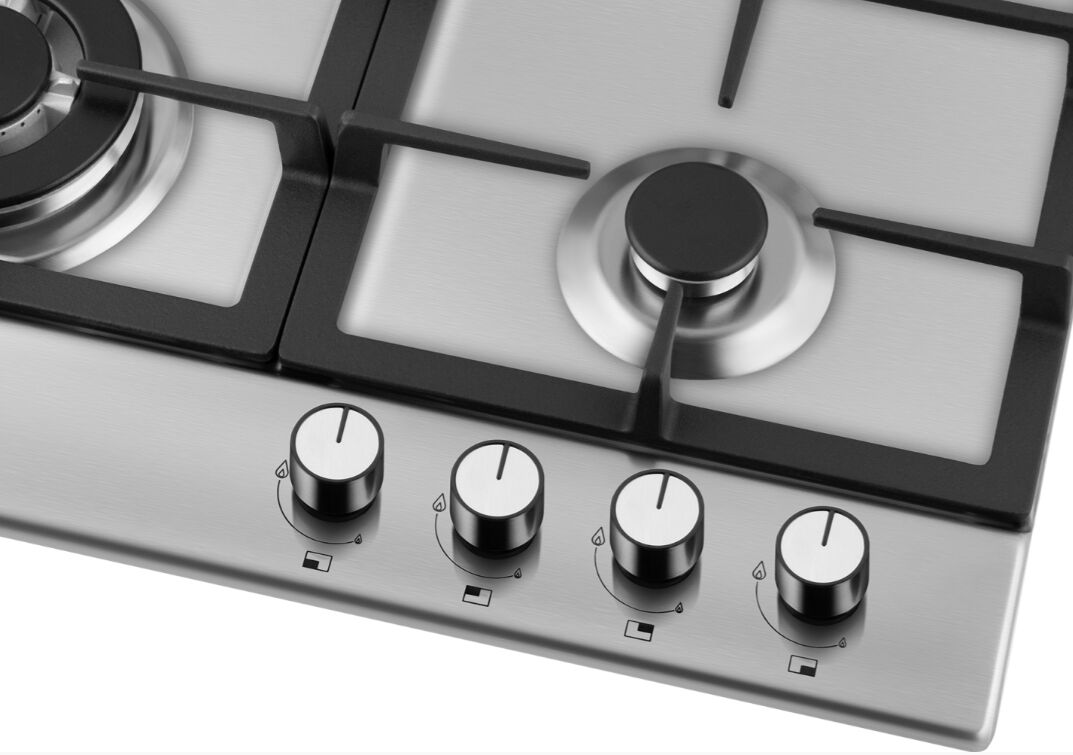 4 конфорки (включая WOK 3.5 кВт с трёхконтурным пламенем), нержавеющая сталь с защитой от отпечатков пальцев, чугунные решётки, газ-контроль каждой конфорки, автоматический электроподжиг и рукоятки Hi-Tech