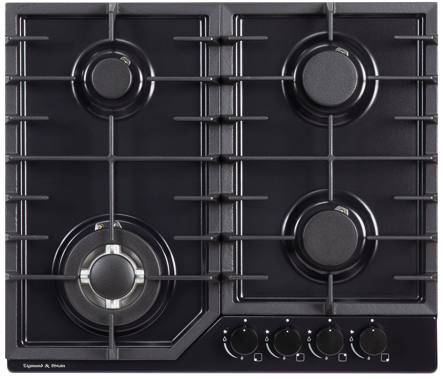 Газовая варочная панель Zigmund & Shtain G 22.6 B – эмаль, WOK 3400 Вт и чугунные решетки