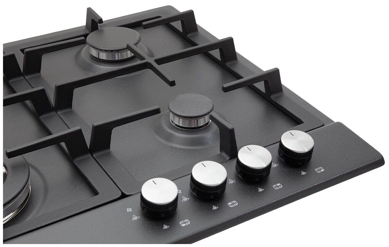 - Фронтальное управление и матовые колпачки горелок – поворотные переключатели расположены спереди для максимального удобства использования. Матовые колпачки горелок придают панели стильный вид и не бликуют на свету.