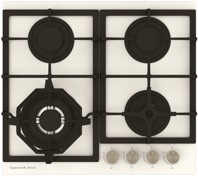 Газовая варочная панель Zigmund & Shtain M 26.6 I – 4 конфорки, WOK 3800 Вт и теплый бежевый цвет в стиле ретро