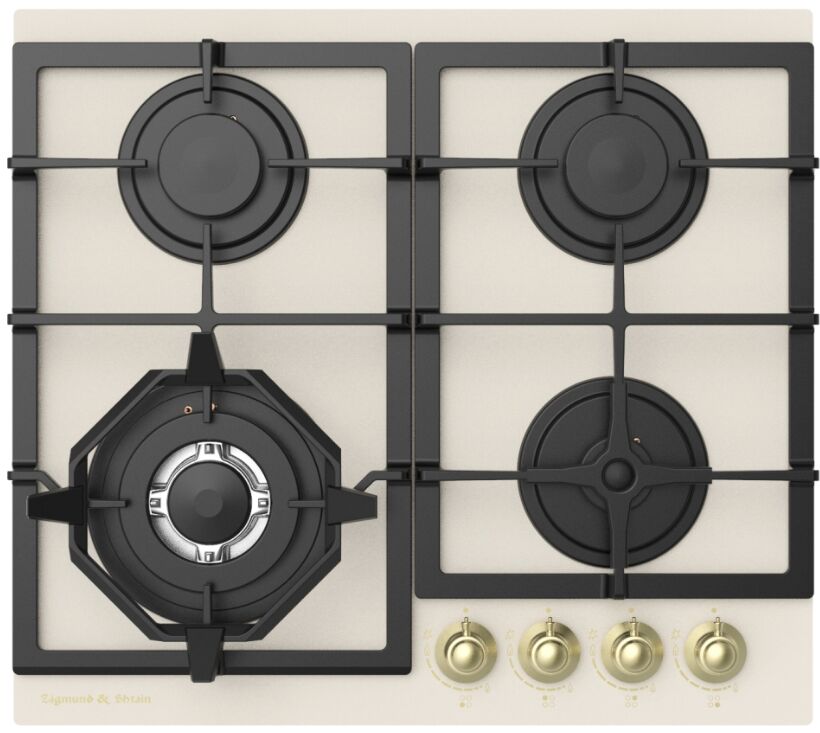Газовая варочная панель Zigmund & Shtain M 26.6 X – 4 конфорки, WOK 3800 Вт и шик бежевого золота