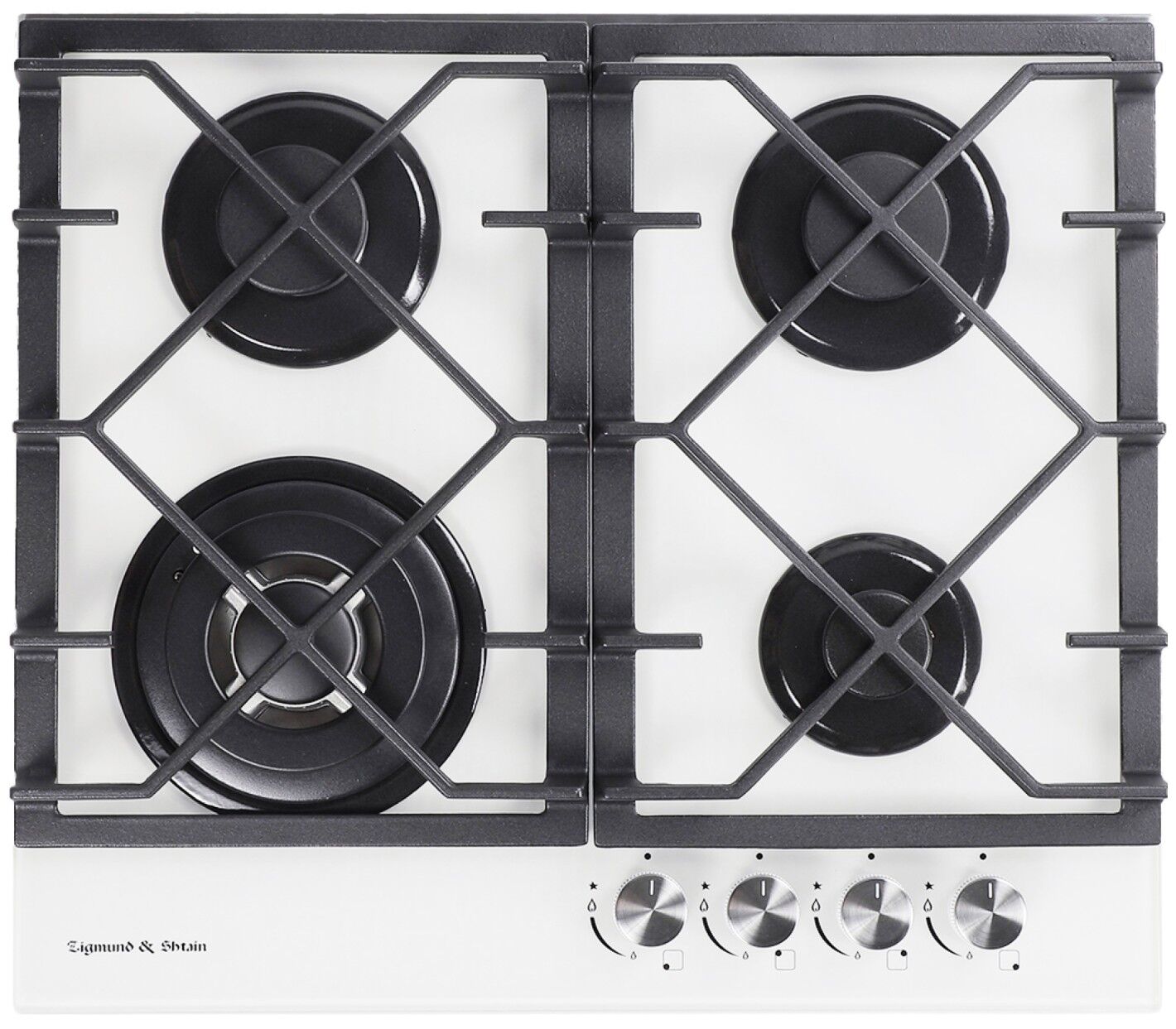 Газовая варочная панель Zigmund & Shtain MN 175.61 W – безупречная белизна, доминирующая WOK-конфорка и классическая функциональность