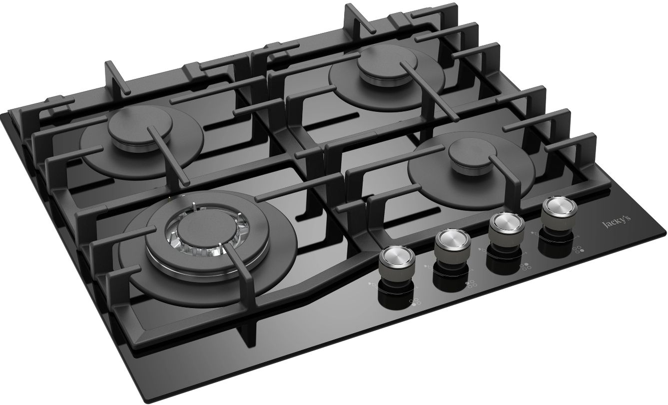 Газовая варочная поверхность Jacky's JH GB623 — черное стекло, WOK-адаптер и итальянские горелки