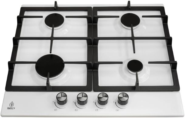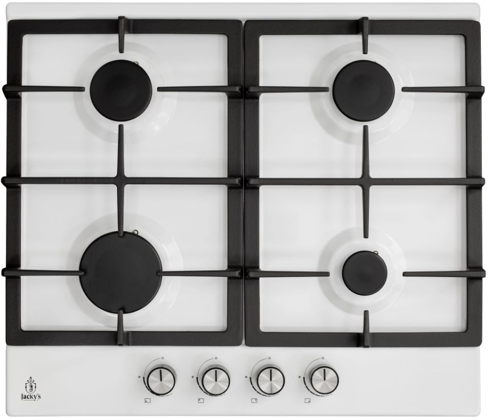 Газовая варочная поверхность Jacky's JH GW633W — универсальное расположение конфорок и белый цвет