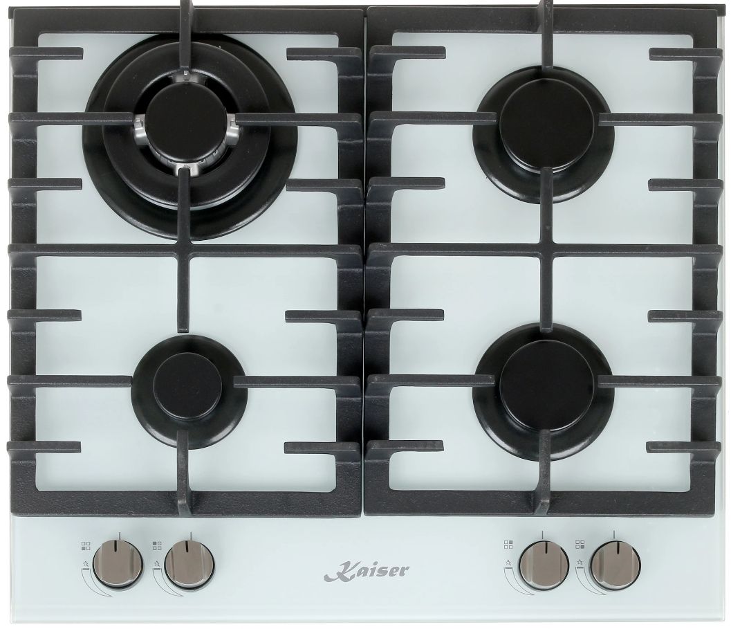Газовая варочная панель Kaiser KCG 6380 W Turbo — элегантный белый цвет, тройная турбогорелка 3.8 кВт и стиль «газ на стекле»