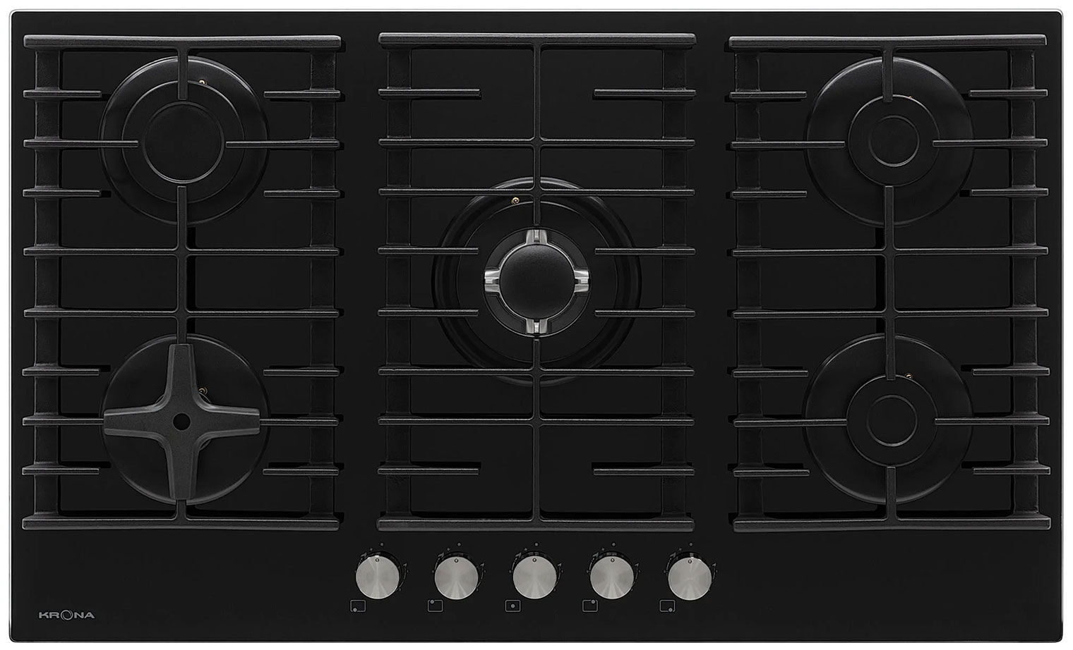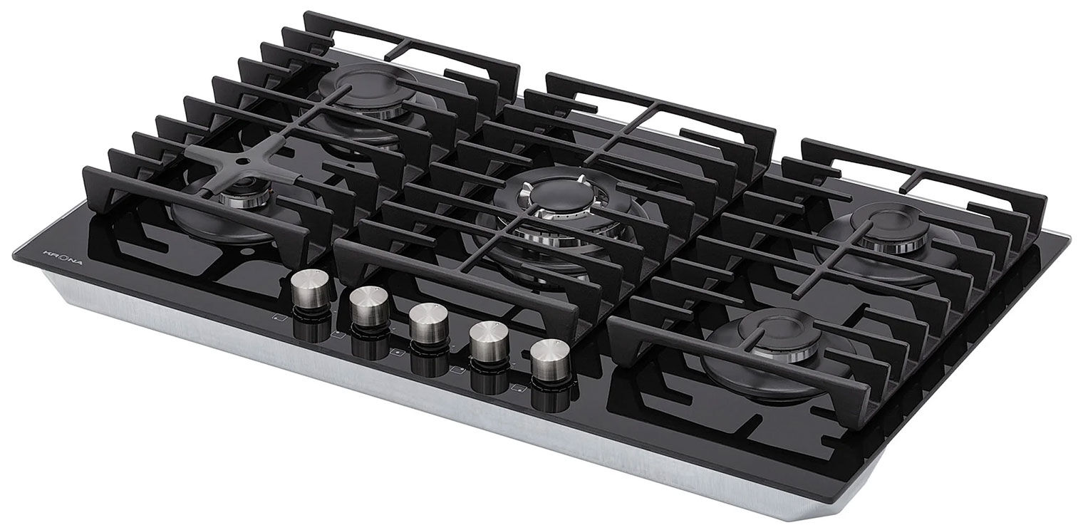 Газовая панель Krona HAGEL 90 BL W FC – широкая модель 86 см с 5 конфорками, WOK и функцией Flame Control