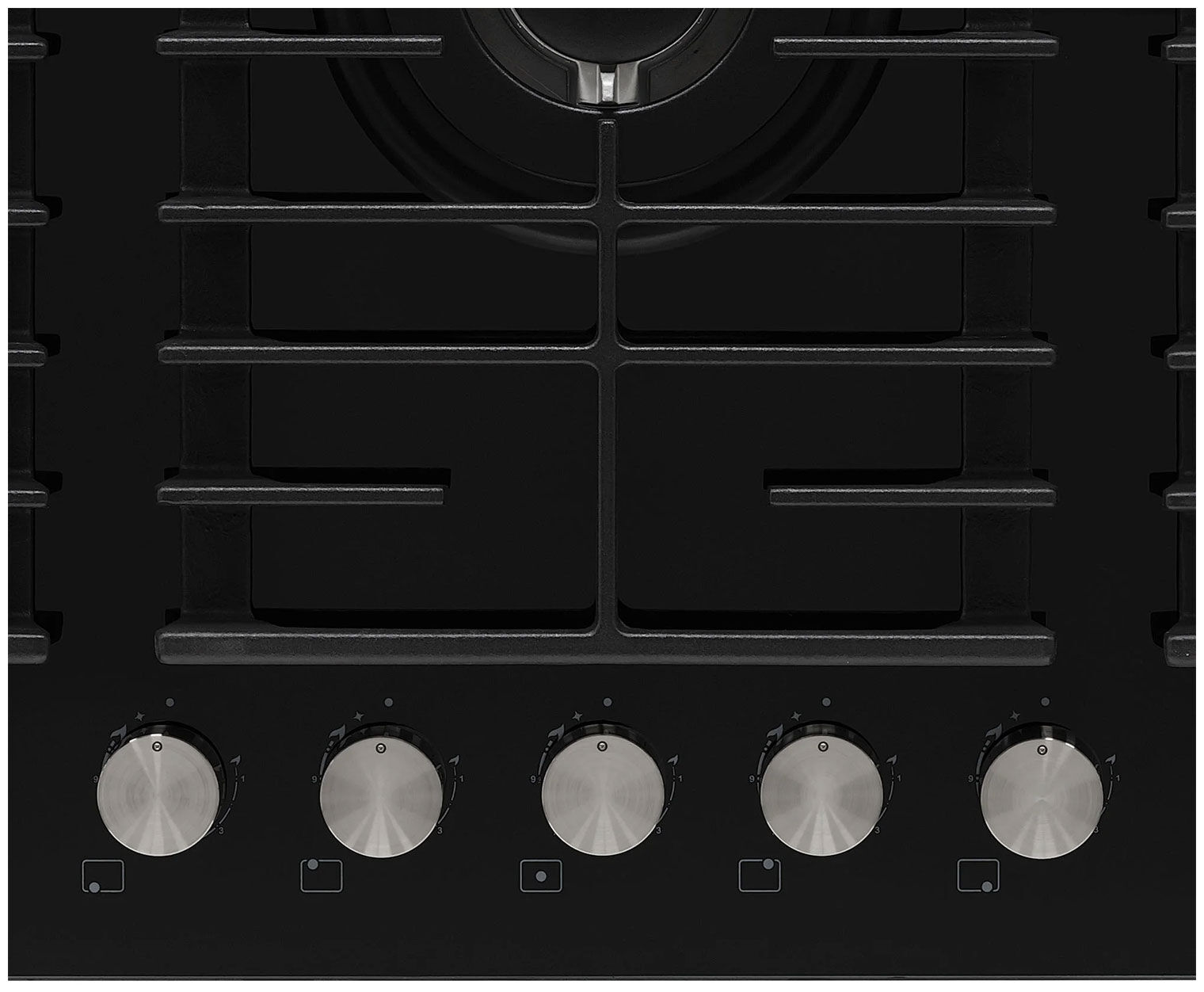 - 5 конфорок, включая мощную WOK-зону 3,8 кВт – идеально для просторной кухни и одновременного приготовления нескольких блюд. Конфорки разной мощности: WOK 3,8 кВт, две по 1,7 кВт, одна 2,8 кВт и одна 1,0 кВт для деликатного нагрева. Общая мощность 10,8 кВт.