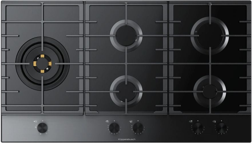 Газовая варочная поверхность Kuppersbusch KG 9850.0 SE-E5 — мощная 5-конфорочная панель с WOK на стекле