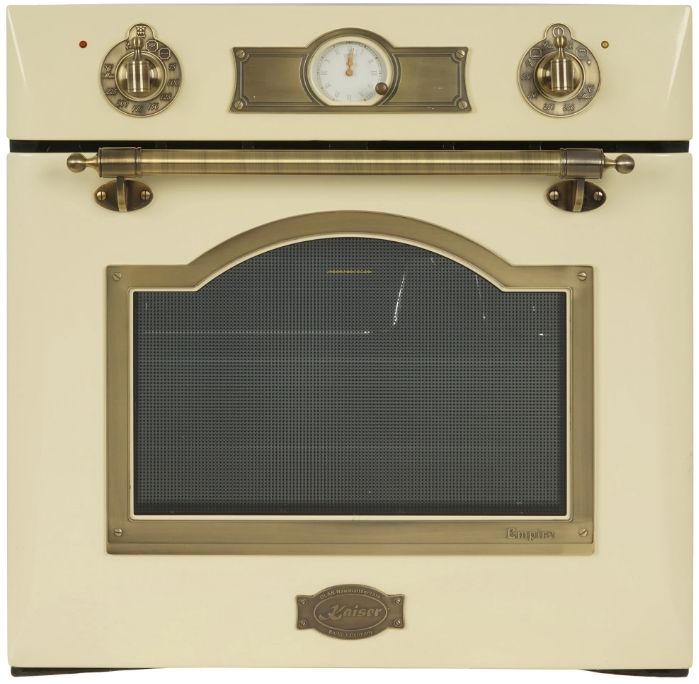 Независимый газовый духовой шкаф Kaiser EG 6345 ELF EM сочетает элегантный дизайн в стиле «ретро» (коллекция Empire) и практичную функциональность. Модель выполнена в кремовом (слоновая кость) цвете с фурнитурой из полированной бронзы и отличается объемом 67 литров. Произведен в Германии, гарантия составляет 2 года.