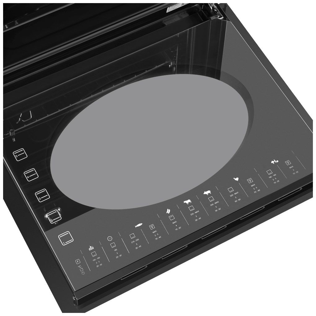 - 5 режимов работы – нижний газовый нагрев, традиционная готовка, вентилятор (конвекция), освещение, работа с открытым/закрытым грилем