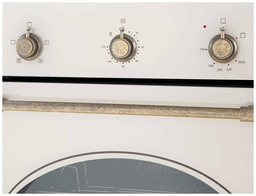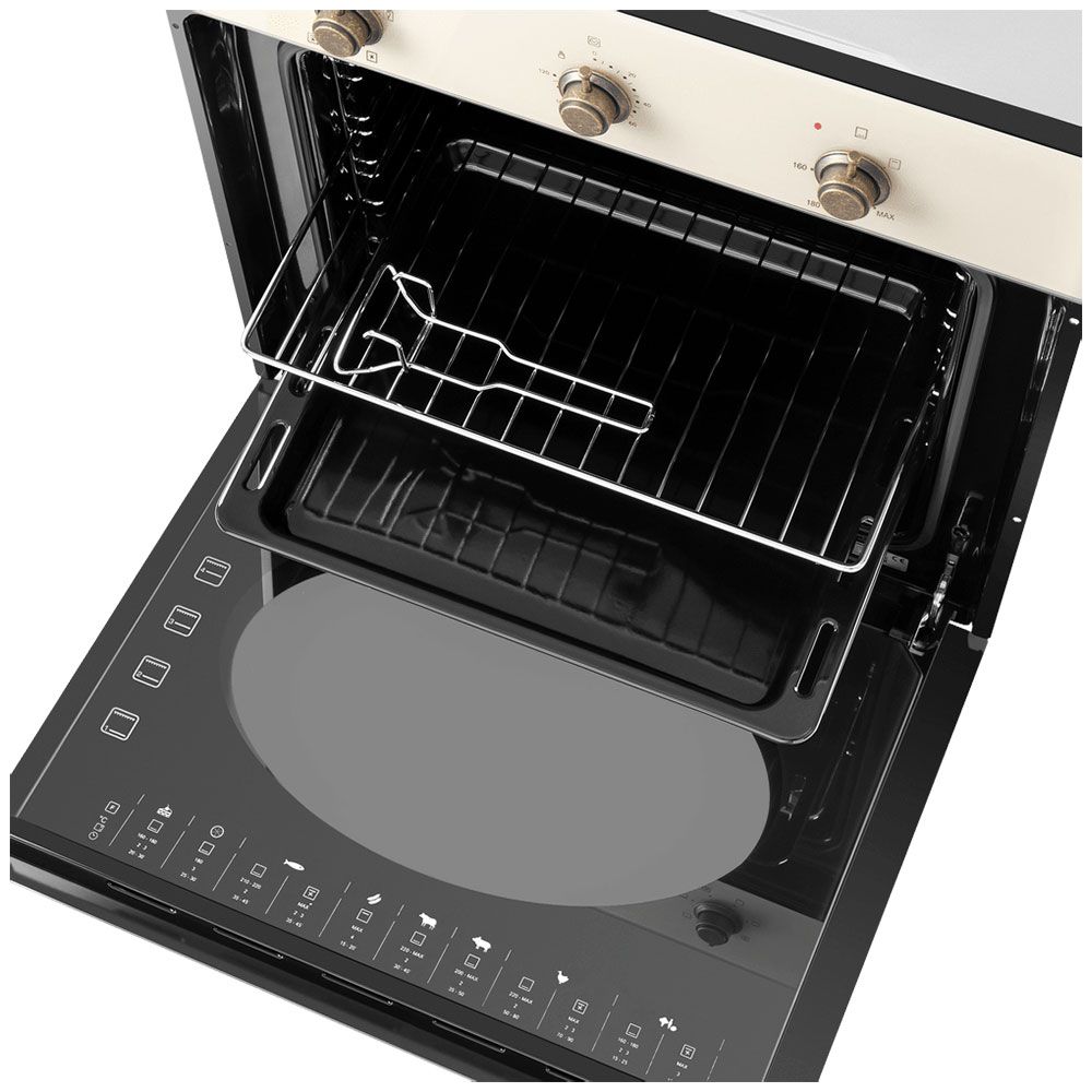 Газовый духовой шкаф Maunfeld EOGC604RIB.MT Slim сочетает элегантный дизайн в стиле «ретро» с цветом "слоновая кость" и практичную функциональность. Модель отличается объемом 60 литров при стандартной ширине 59.5 см, что позволяет готовить несколько блюд одновременно.