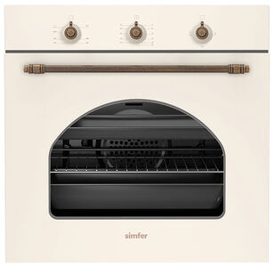 Газовый духовой шкаф Simfer B6GO12017 – это уникальное сочетание винтажного дизайна и современных технологий безопасности. Модель в эксклюзивном цвете бежевый рустик с бронзовыми ручками и переключателями станет настоящим украшением кухни в стиле кантри, прованс или классика. Внутри – объём 58 литров, газ-контроль, автоматический розжиг и эмаль лёгкой очистки. В комплекте – противни с антипригарным покрытием и форсунки для баллонного газа. Турецкое качество и гарантия 5 лет.