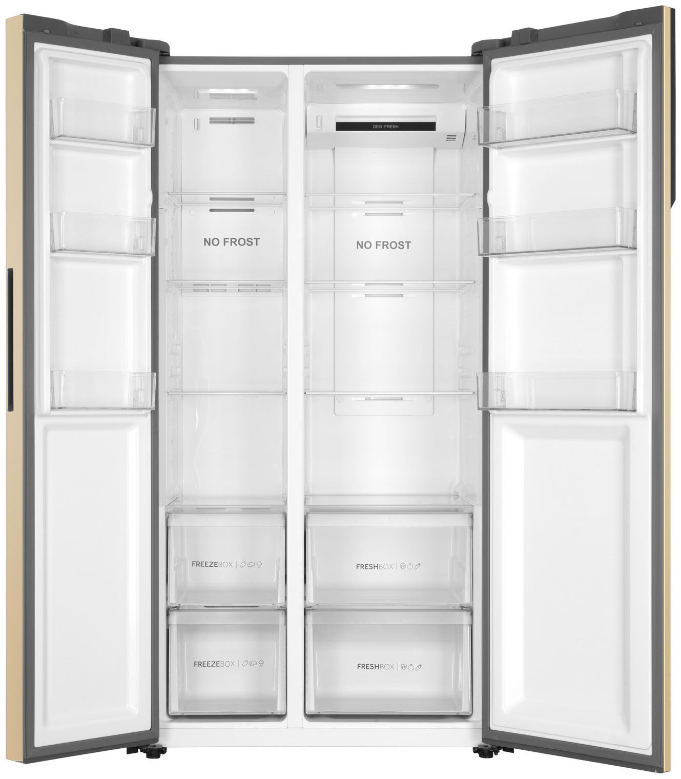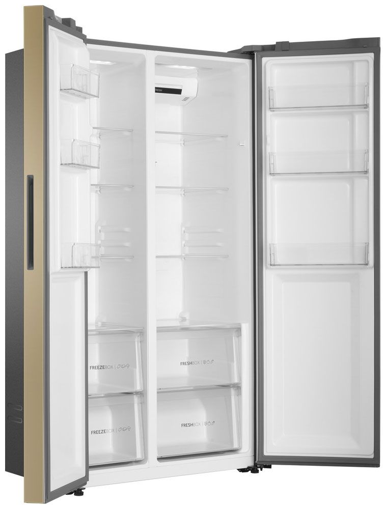Двухдверный холодильник Side-by-Side Haier HRF-541DG7RU сочетает элегантный дизайн в золотистом цвете и инновационные технологии для безупречного сохранения свежести продуктов. Модель отличается внушительным объемом и продуманной организацией пространства.
