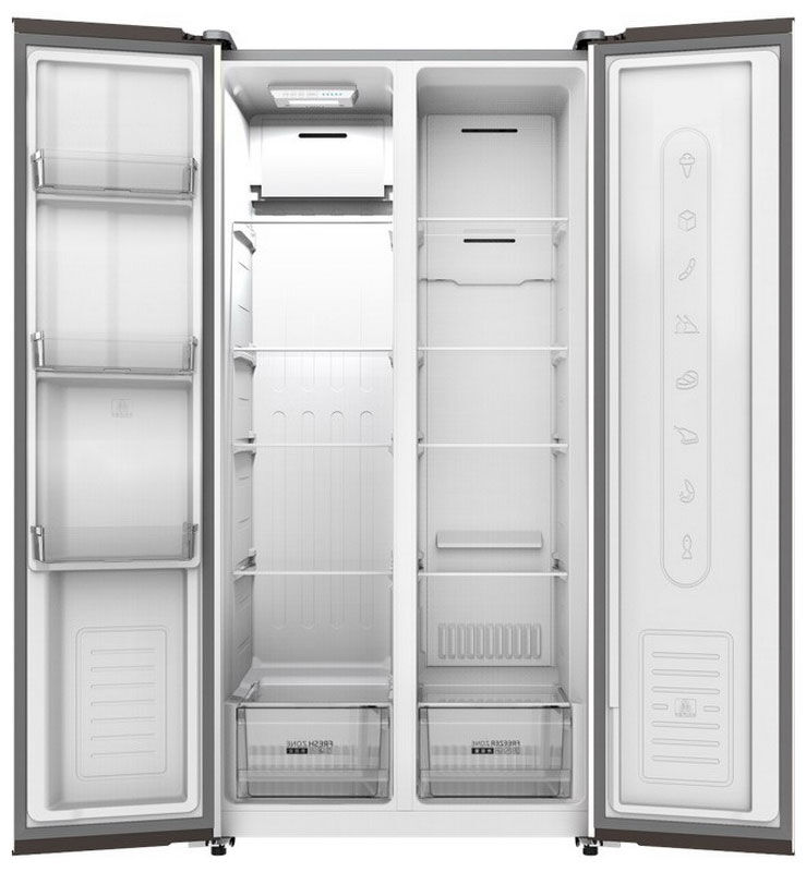 - Дизайн Side-by-Side – премиальный формат с максимальным удобством – две отдельные дверцы в формате Side-by-Side обеспечивают удобный доступ к продуктам. Раздельное открывание секций экономит холод и электроэнергию.