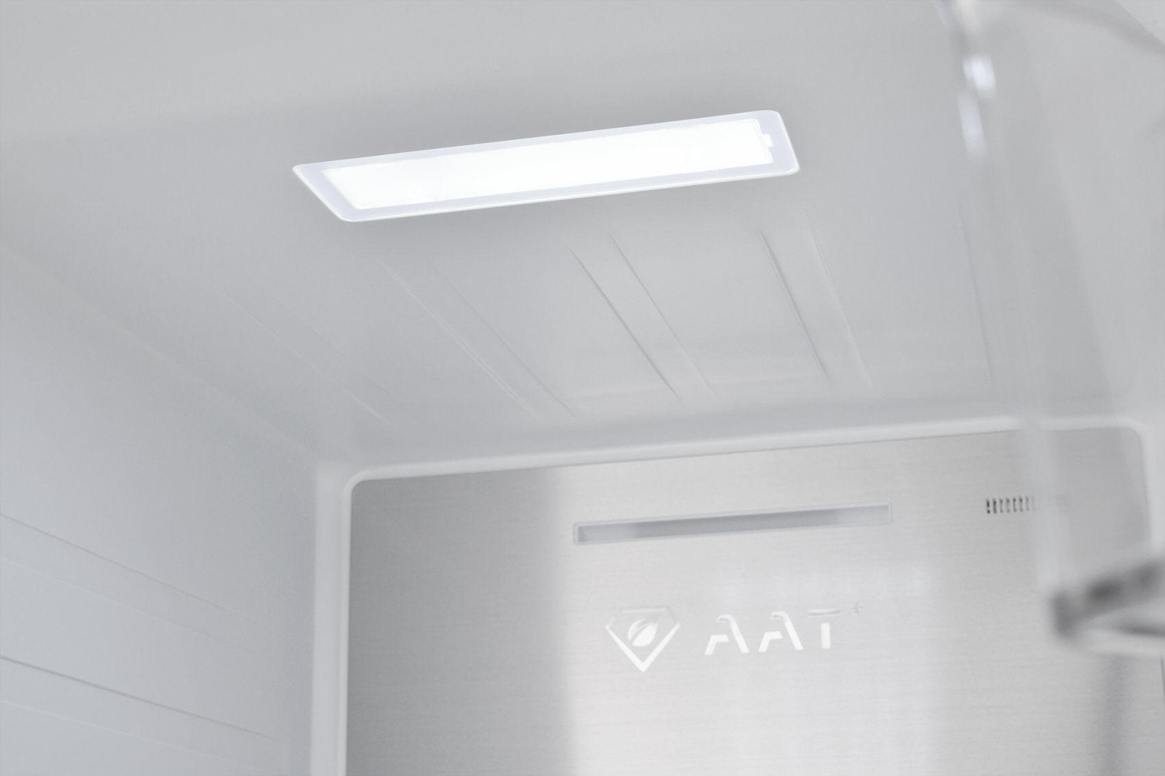 - Full No Frost в обеих камерах – забудьте о размораживании навсегда – автоматическая система удаления инея полностью исключает образование льда и наледи. Продукты не примерзают к стенкам, а вы экономите время и силы.