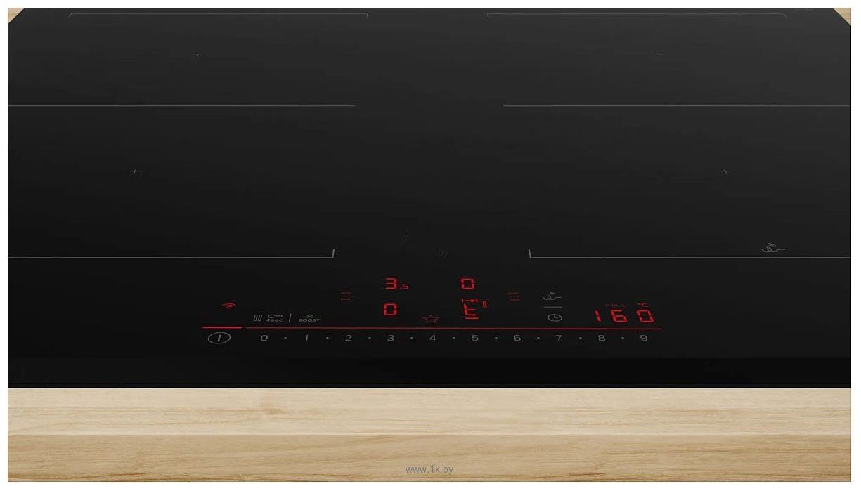 - PowerBoost – функция максимальной мощности для быстрого закипания. Активируется для каждой конфорки, ускоряя нагрев до 35% по сравнению с обычным режимом.