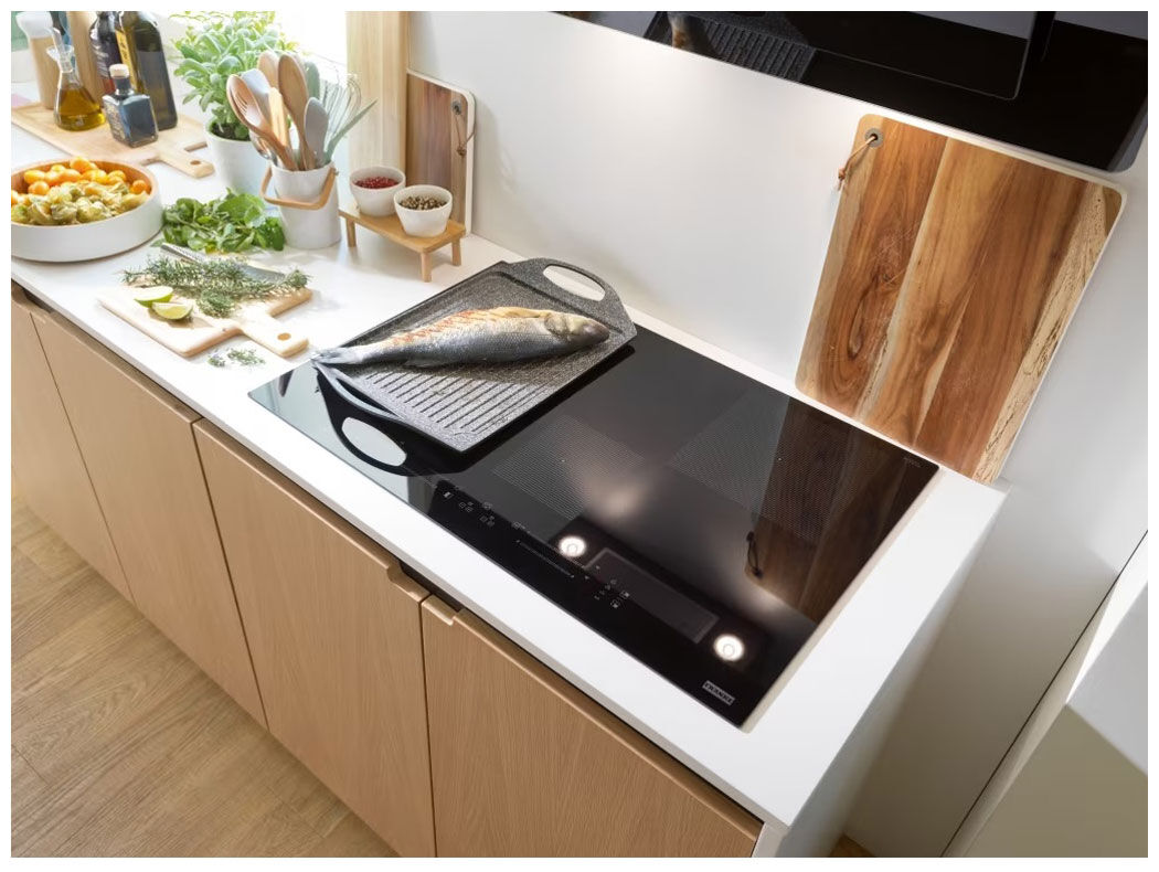 - Инновационная система FLEXI – индукционный мост для объединения зон – эксклюзивная технология Franke, позволяющая объединять две индукционные зоны в одну удлиненную поверхность нагрева. Идеально для утятниц, рыбных сковород, сотейников и посуды нестандартных форм. Обеспечивает равномерный нагрев по всей площади объединенной зоны.